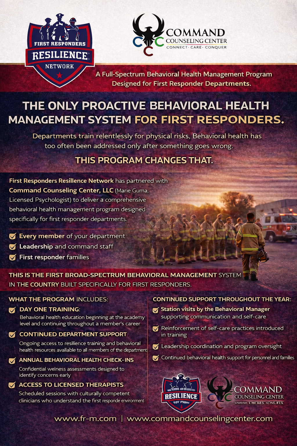 The First Responders Resilience Network and Command Counseling Center have partnered to provide a proactive behavioral health management system for first responder departments.